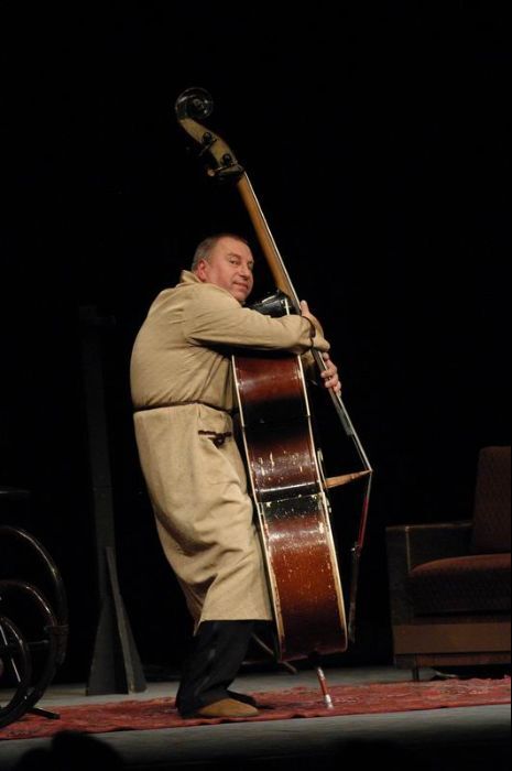 Staje w jednym szeregu z widzem. Muzyk to artysta, zgoda. Ale muzyk to w tym przypadku również urzędnik zatrudniony na umowę na czas nieokreślony i próbujący się jako-tako wywiązać ze swoich zobowiązań. Dzięki temu przedstawicielom różnych zawodów obecnym na widowni łatwiej wczuć się w żywot kontrabasisty niż na przykład w rozterki Hamleta.