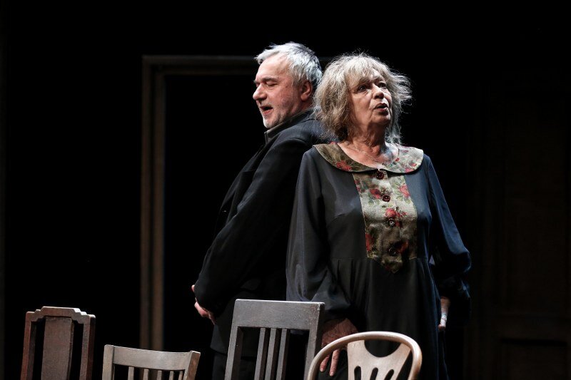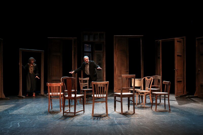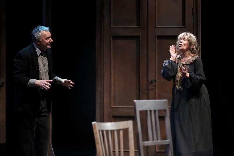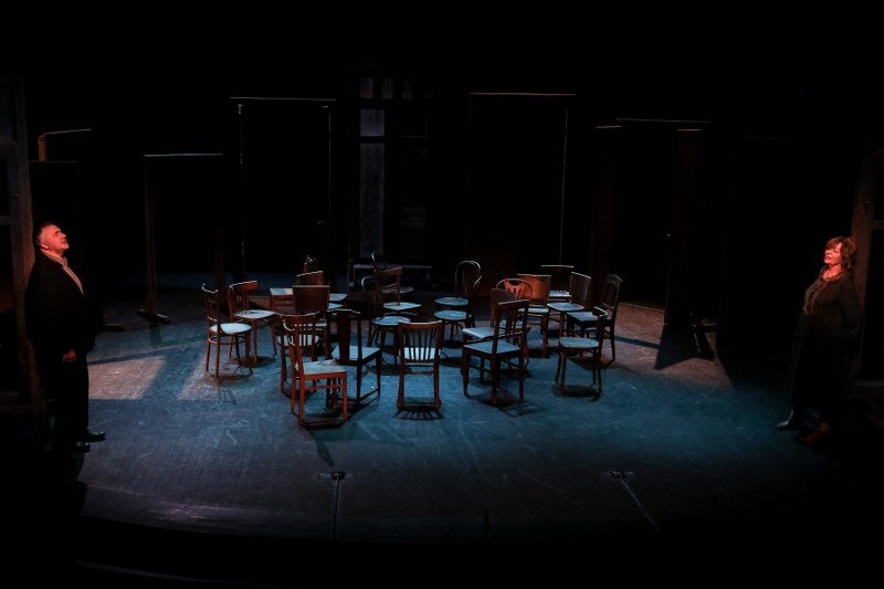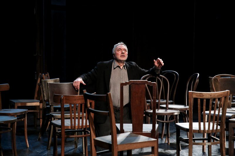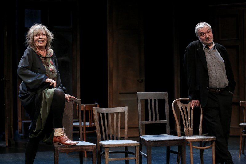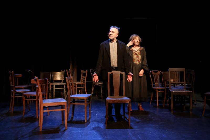 Stary i Stara. Ich wspólna przeszłość jest pełna niespełnionych marzeń i pragnień, co maskują wygórowanymi wyobrażeniami o własnych możliwościach. Ubarwiają swoje dni opowiadaniem nieustannie tych samych wspomnień i anegdot oraz odgrywaniem przed sobą małżeńskiej komedii. Przyjmują również w swoim domu wyimaginowanych gości, dla których na scenie pojawia się coraz więcej krzeseł, i z którymi prowadzą ożywione rozmowy. Wszystko to ma zmniejszyć lęk przed pustką, niespełnieniem i miałkością ich egzystencji. Jednak lęk narasta wraz ze zbliżającym się końcem życia i jego bilansu. Stary chce zostawić po sobie przesłanie, ale w kulminacyjnym momencie jedyne o czym może myśleć, to klopsiki przygotowywane przez swoją żonę. Czy jednak na pewno sens życia jest gdzie indziej?