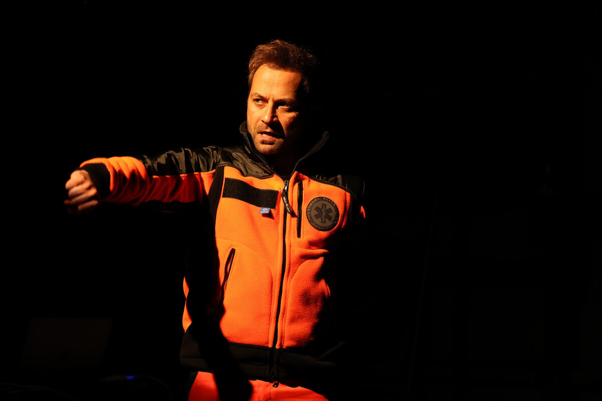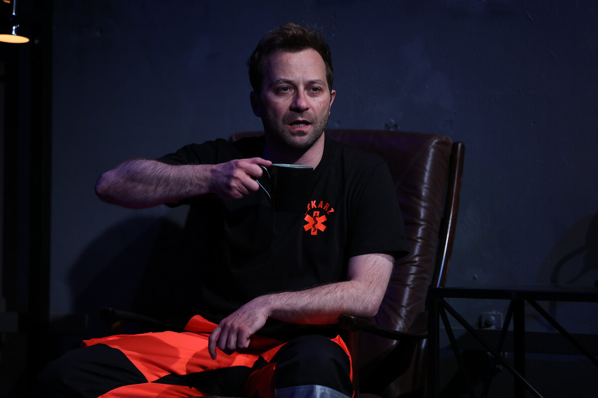 Monodram na podstawie książki reporterskiej „Pogo”, uznawanej za jedną z najwybitniejszych w tym gatunku w ostatnich latach w Polsce (właśnie znalazła się ona w finale prestiżowej nagrody im. Ryszarda Kapuścińskiego). Jej autor Jakub Sieczko, to lekarz, specjalista anestezjologii i intensywnej terapii, który przez sześć lat pracował w stołecznym pogotowiu ratunkowym. A jego książkowy bohater nie owija w bawełnę: „Mam o Grochowie nakłamane. Czasem myślę, że żyją tu tylko stare kobiety i pijani mężczyźni w średnim wieku”. Dlatego pewnie recenzentka „Polityki” pisała: „Sieczko bardzo się stara odrzeć zawód ratownika medycznego z bohaterstwa i sprowadzić na ziemię widzów sensacyjno-ckliwych szpitalnych seriali (…). Z jakim efektem? Paradoksalnie – odwrotnym”.