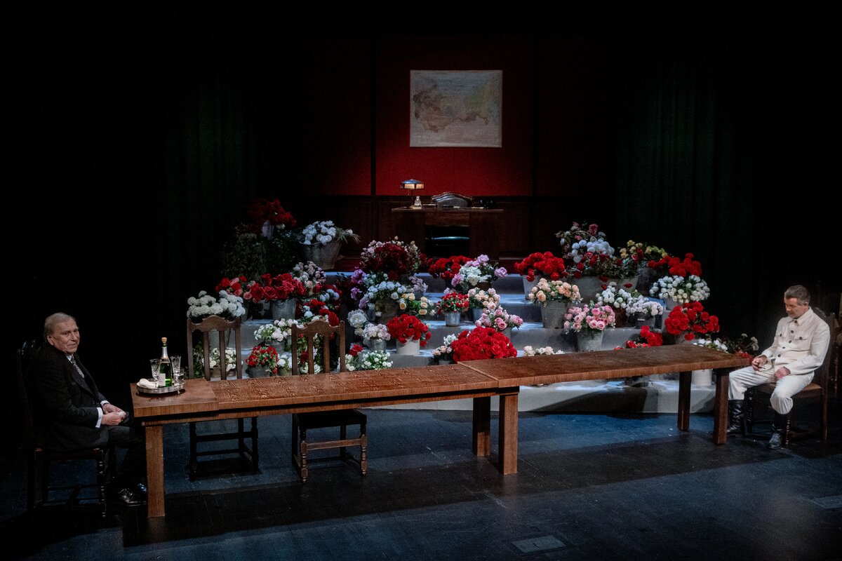 Dramatycznie zderzenie dwóch postaci niezwykłego kalibru: Józefa Stalina i Konstantina Stanisławskiego. Pierwszy to tyran i jeden z największych zbrodniarzy w historii, ale też teatralny koneser i gorliwy widz. Drugi – bodaj największy kreator teatralny współczesności, ojciec nowoczesnego teatru, twórca „Metody” – systemu reguł gry aktorskiej, po dziś dzień (choć w różnych odmianach) uważanego za kanoniczny.