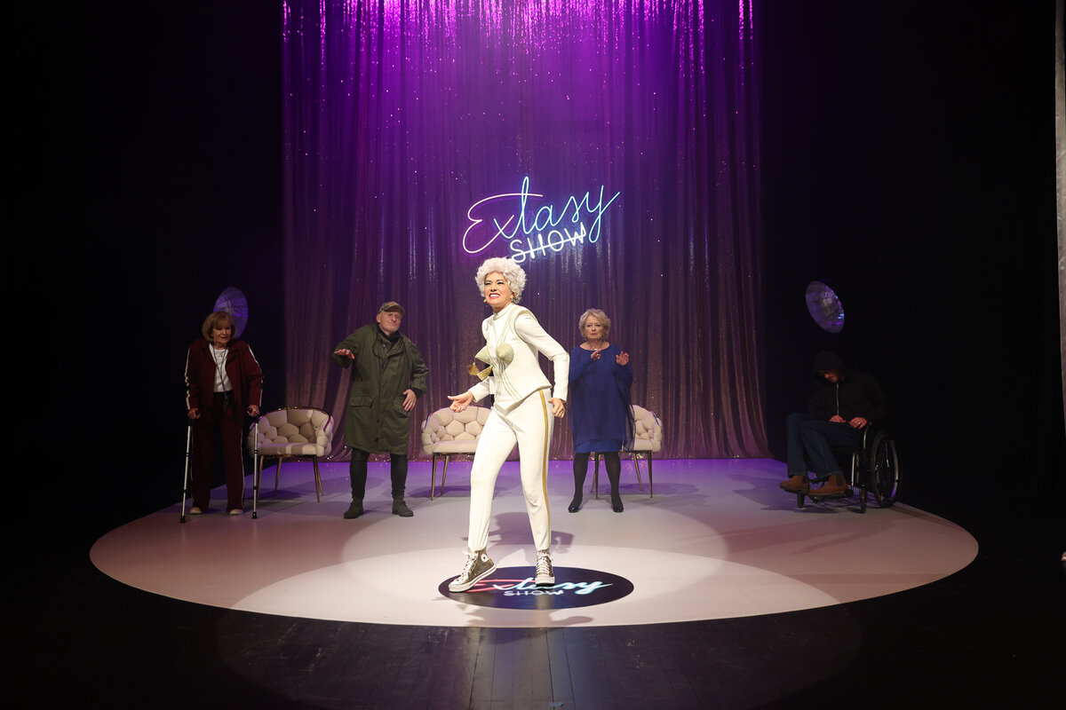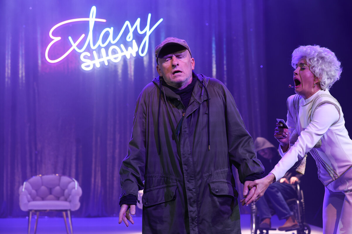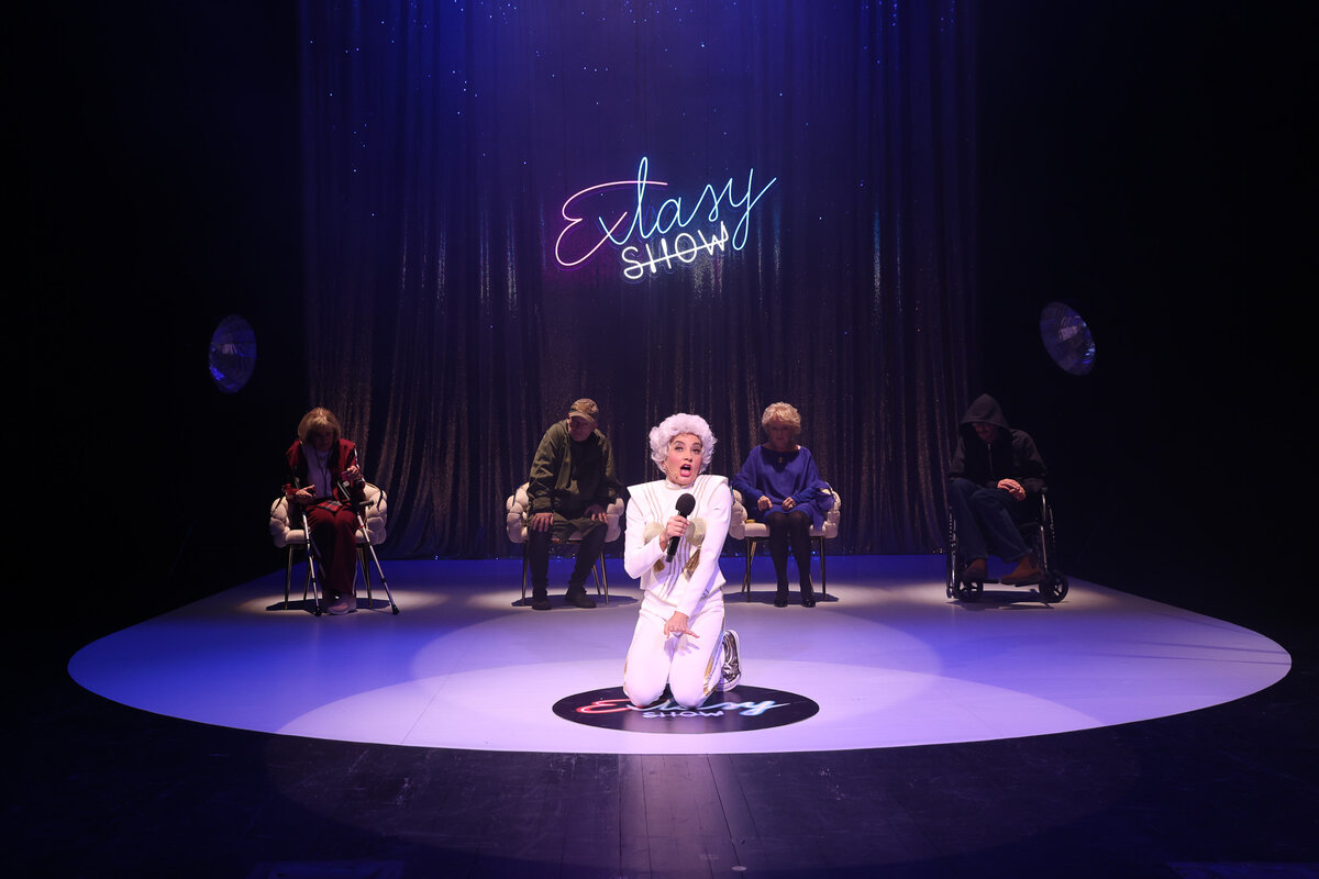 Jest rok 2045. Wszyscy starsi ludzie muszą poddać się testowi, który zadecyduje o tym, czy będą mogli żyć dalej. W sterylnej, zamkniętej poczekalni, na zapleczu głównych wydarzeń, cztery osoby biorące udział w transmitowanym przez TV programie oczekują na jego ostateczny wynik i wspominają dawne dzieje. Dla niektórych werdykt będzie oznaczał pożegnanie z życiem. Takie są bowiem reguły gry owego „Extasy Show”.