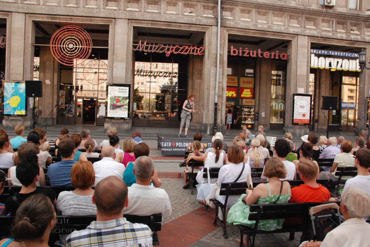- Do pomysłu grania w plenerze zainspirowały mnie doświadczenia we Włoszech. Było gorące lato i przypomniałam sobie, że przecież we Włoszech grałam dwa miesiące w parkach, na ulicach, na rynkach małych miasteczek... Że można by zrobić taki uliczny teatr również w Polsce. Pod warunkiem, że będzie on robiony za darmo. Pomyślałam sobie, że jeżeli ktoś wysiądzie z tramwaju czy z autobusu i usłyszy dialogi aktorów, będzie uważał, że to jest coś dla niego, że teatr jest czymś interesującym, że teatr jest czymś żywym, czymś bliskim. Co roku ogląda nas około 15000 osób. Są to tytuły, które za każdym razem zahaczają jakiś temat współczesny albo pokazują mało znane gatunki teatralne. - mówi Krystyna Janda, szefowa Fundacji Krystyny Jandy na Rzecz Kultury.