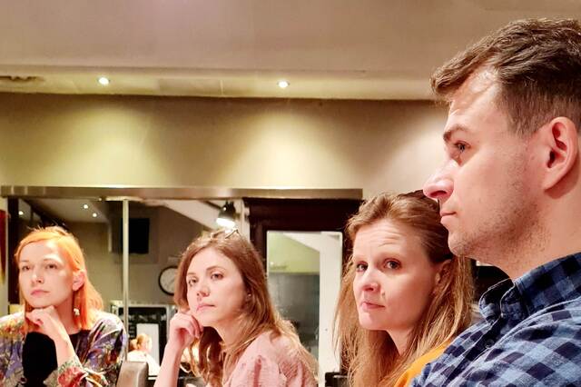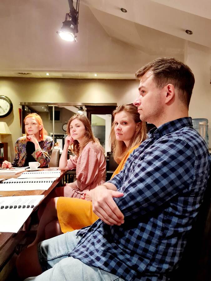 Podczas pierwszych prób, choć formalnie zwanych "czytanymi", zespół (Paulina Moś, Helena Radzikowska, Paweł Rutkowski i Mateusz Trzmiel) już próbuje także układy sceniczne (w czym wspomoże go Jakub Lewandowski) i rytmy (z wyraźnym nawiązaniem do rapu) podawania tekstów (muzykę pisze Albert Pysk a konsultantem muzycznym jest Mateusz Kocięcki). Gotowe są też projekty scenografii i kostiumów (autorstwa Karoliny Fandrejewskiej).