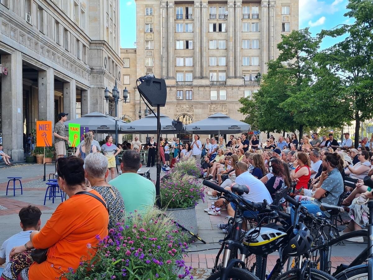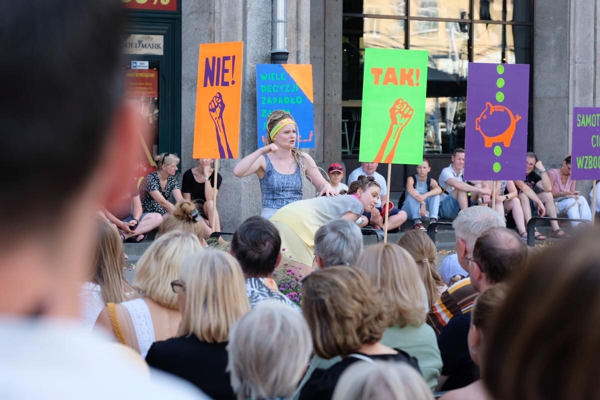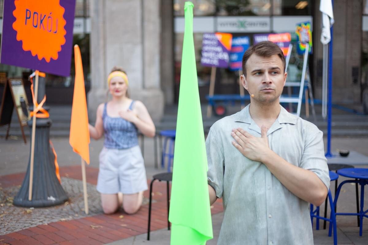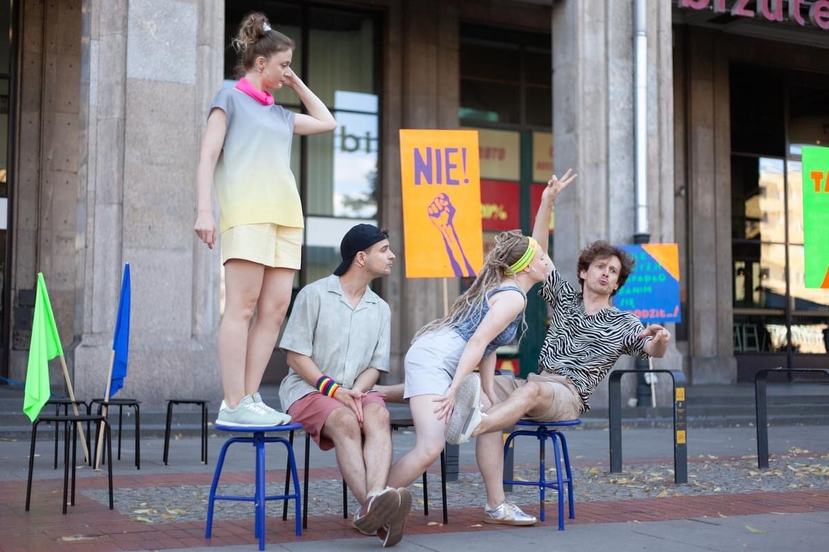 Za nami premiera POLITYKI w reżyserii i adaptacji Magdaleny Drab w wykonaniu Teatru PAPAHEMA, a zarazem inauguracja sezonu plenerowego na placu Konstytucji!