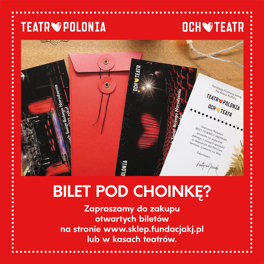 Już wkrótce Mikołajki, Święta Bożego Narodzenia, Nowy Rok, i te piękne chwile, kiedy wybieramy prezenty dla naszych bliskich. W tym roku podarujcie im TEATR! Polecamy naszą ofertę BILETÓW DLA DWOJGA, KARNETÓW oraz BILETÓW OTWARTYCH.