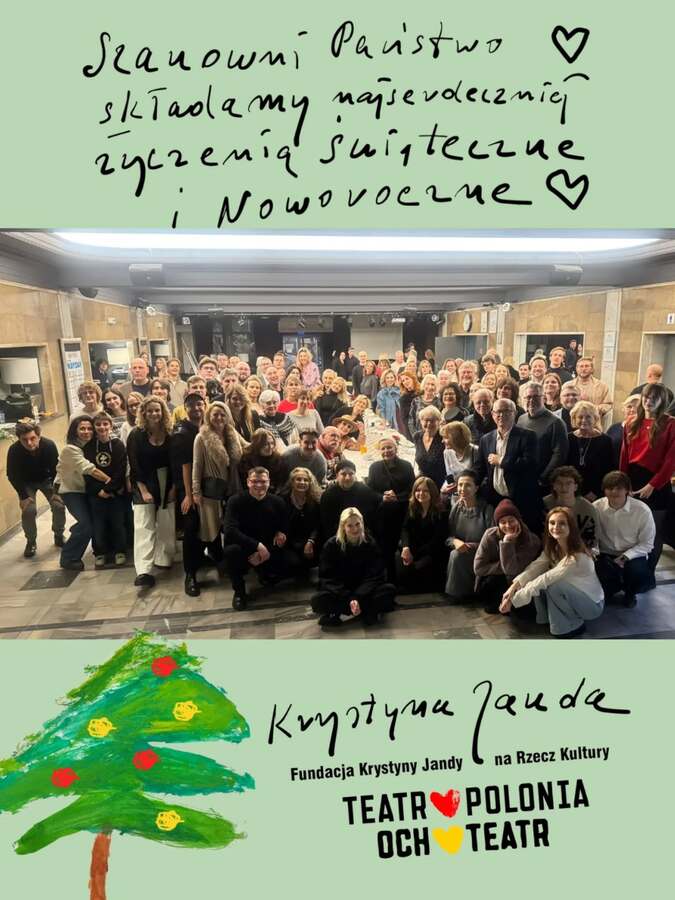 Aktualności Najlepsze życzenia Kochana Publiczności! Najlepsze życzenia świąteczne dla Państwa. Niech to będzie piękny, spokojny, wypełniony miłością czas, a także okazja do wytchnienia od codzienności. Gramy w obu teatrach już 26 grudnia Do zobaczenia! Dodatkowe informacje GALERIA ZDJĘĆ